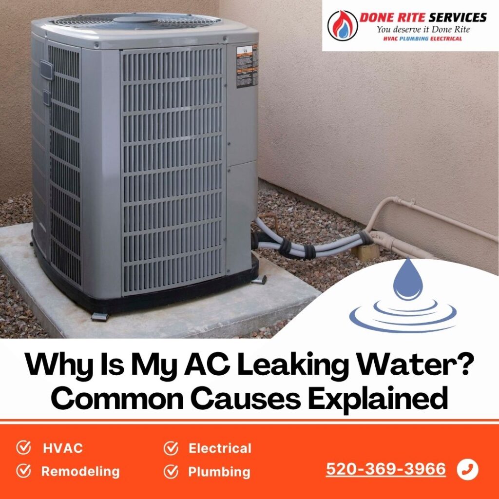As Southern Arizona’s trusted HVAC contractor, Done Rite Services is here to help 24/7. By the end of this article, you’ll understand why your AC is leaking water and what steps you can take to get it Done Rite.